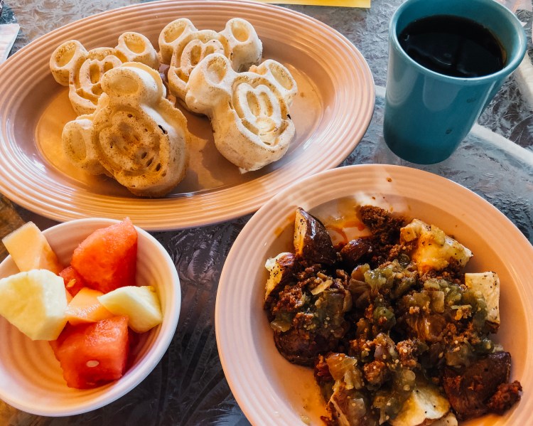 Gluten-Free Mickey Waffles , fruit & loaded potatoes